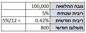 * כל החישובים והדוגמאות הם לצורך הדגמה והבנה של השיטה, אלה לא מספרים ואחוזים שתקבלו בבנק בזמן לקיחת ההלוואה.